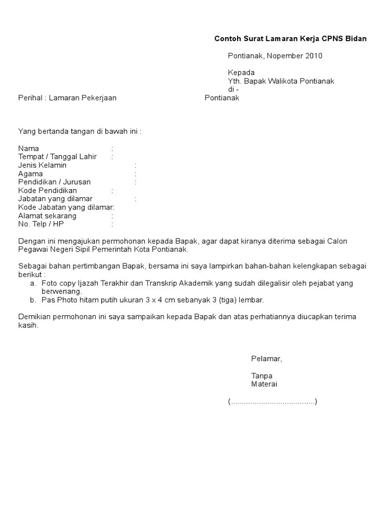 Contoh Surat Lamaran Cpns Doc : Contoh Surat Lamaran Cpns Doc - Bermaksud mengajukan lamaran untuk mengikuti seleksi penerimaan (cpns/pppk**) kabupaten garut tahun anggaran 2021, formulir pendaftaran dan berkas persyaratan .. Lingkungan pemerintah kabupaten pesisir barat tahun 2021, . Pada artikel ini, bang lulus akan memberikan contoh cara membuat surat lamaran cpns dan surat pernyataan cpns sebagai referensi. Dengan ini menyampaikan surat lamaran agar dapat mengikuti seleksi calon pegawai negeri sipil (cpns) di lingkungan pemerintah kabupaten kulon progo tahun . Kepala badan kepegawaian daerah di. Salah satu dokumen yang wajib diunggah adalah surat lamaran.